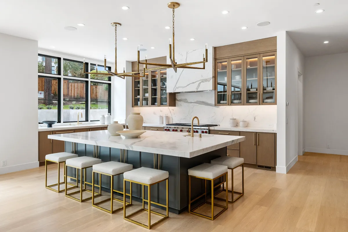 Every detail of this home was curated to meet the owners' needs. The true centerpiece the space where every design decision converged—was the kitchen. At its center stood the largest island we have ever designed, crafted from a single slab and craned into place before being set atop a custom-built base. The height was chosen with purpose, this was just standard height comfortable for both standing and seated use, so it would feel natural whether the homeowner was enjoying a quiet morning or hosting a lively gathering. Its scale and seamless surface gave the room a sense of grandeur while serving as a highly functional hub for daily life. This house was designed from the ground up so maybe that would be a good point.